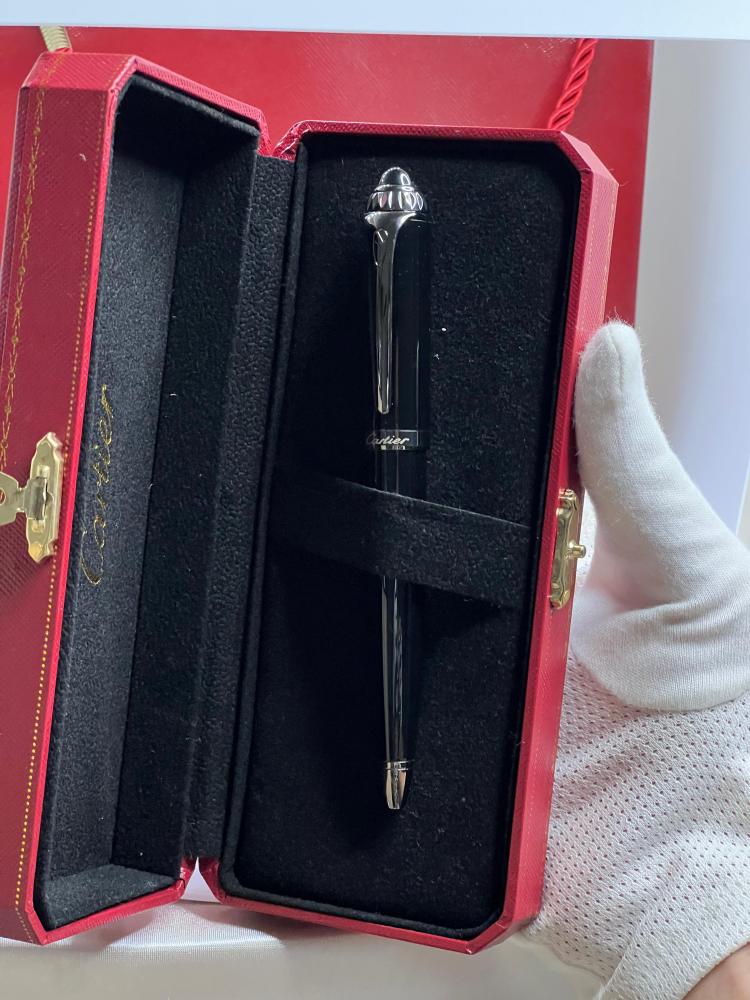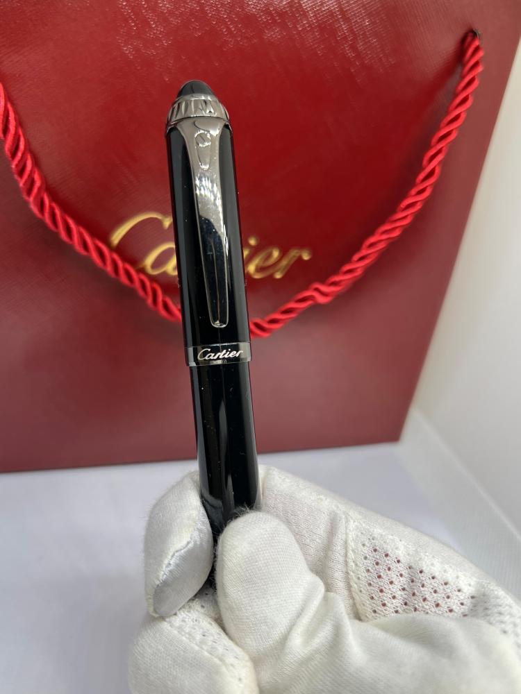 قلم حبر جاف (بولبوينت) من مجموعة "سانتوس دو كارتييه"، غطاء من المعدن منحوت مزيَّن بزخرفة الهيكل وهيكل من المعدن المصقول والمطلي بالبلاديوم، تفاصيل مطلية بالبلاديوم وكابوشون من الراتين الأزرق. المقاييس: 134 × 19 مم. يأتي مع عبوة حبر أسود متوسّطة الحجم لقلم حبر جاف (بولبوينت). تتيح لك كارتييه إمكانية إضفاء الطابع الشخصي على أداة الكتابة الخاصة بك.