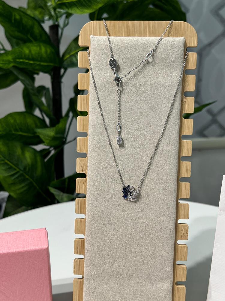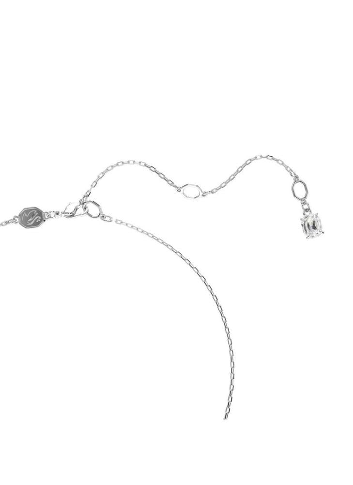 قلادة سوارفيسكي الخلابة.تتميز القلادة بحجر أنيق في منتصفها، تحيط به كريستالات صغيرة مثبتة على إطار مطلي.الطول: 38 سم، مقاس الدلاية: 0.9×1.1 سمينهاية بشعار الماركة