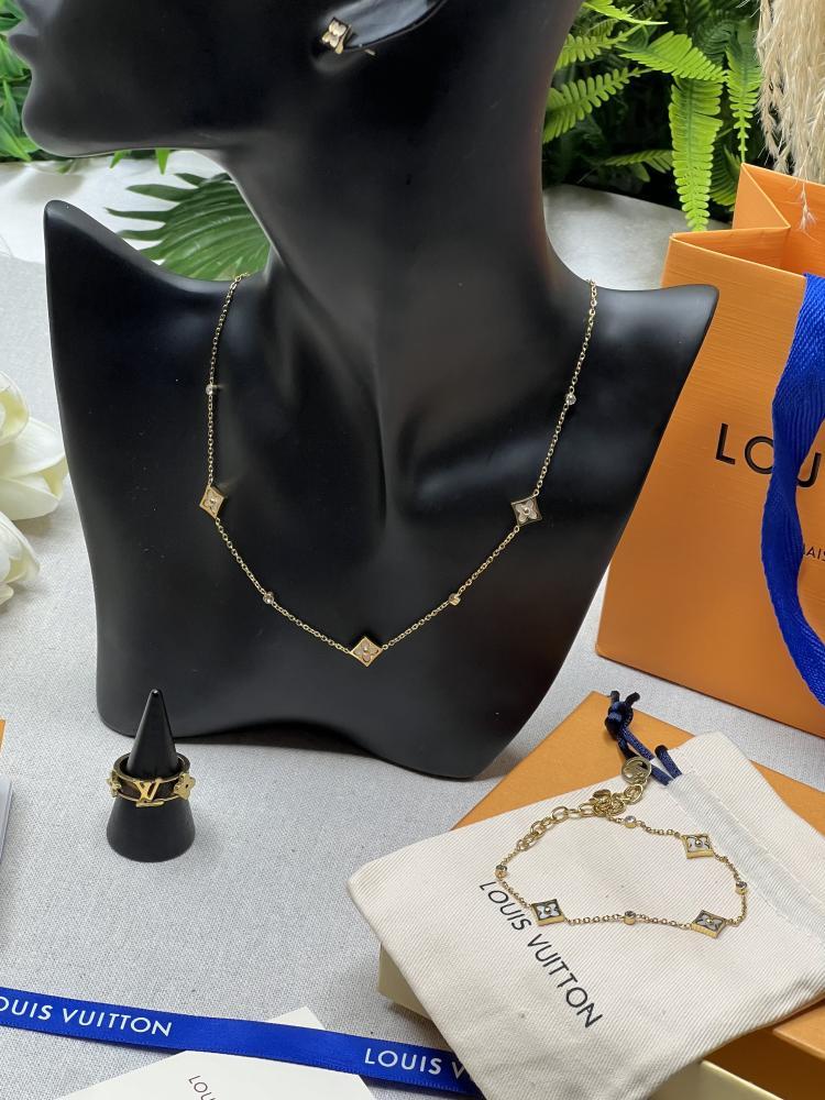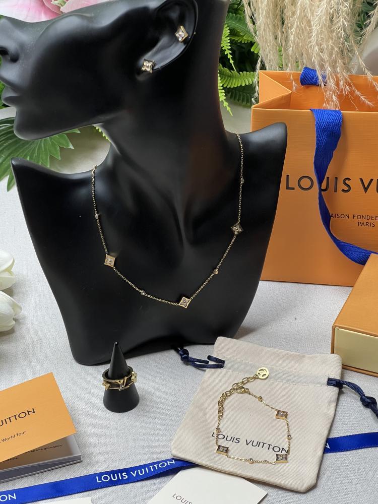 الطقم عبارة عن قلادة LOUIS VUITTON بشعار الماركة