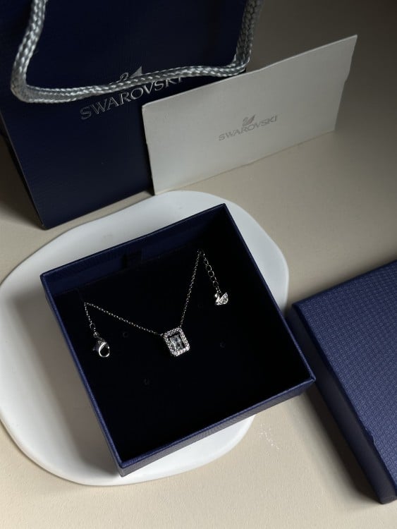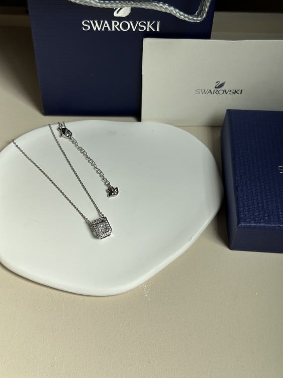 قلادة سوارفيسكي الخلابة مبتكرة بخبرة كي تتيح للحجر الذي يتوسطها أن يتراقص ويتحرك مع حركتك.