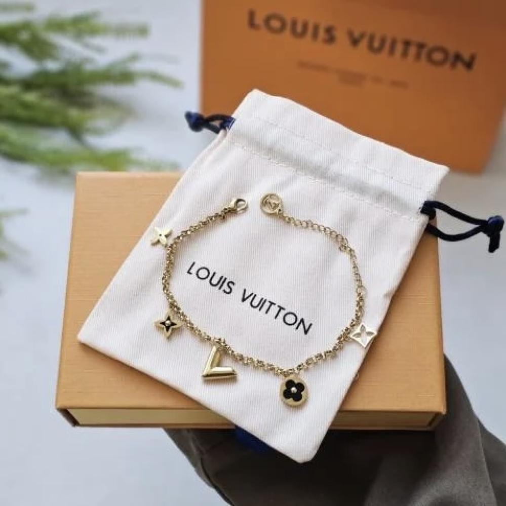 إسوارة مستوحاة من أساور لويس فيتون الراقيةلون ذهبي مزين بحروف الماركة وبأزهار Idylle Blossom .مصنوع من الستانلس ستيلس (فولاذ مقاوم للصدأ) بطلاء الذهبالطول: 19 سم مع وصلات قابلة للتعديل بطول 17.5 سم و16.5 سم.