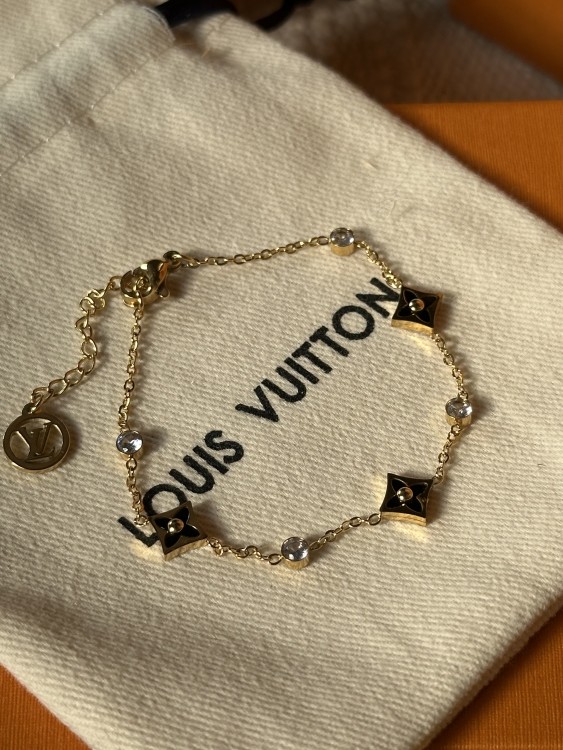 إسوارة مستوحاة من أساور لويس فيتون الراقيةلون ذهبي مزين بحروف الماركة وبأزهار Idylle Blossom .مصنوع من الستانلس ستيلس (فولاذ مقاوم للصدأ) بطلاء الذهبالطول: 19 سم مع وصلات قابلة للتعديل بطول 17.5 سم و16.5 سم.