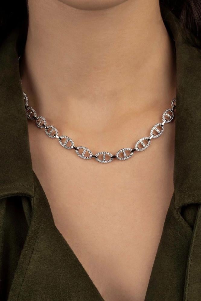 فضة إسترليني، زركونيا على شكل مكعبات باللون الأبيضاللون: فضيطول السلسلة الإجمالي: 40 سم، 45 سم، 50 سم