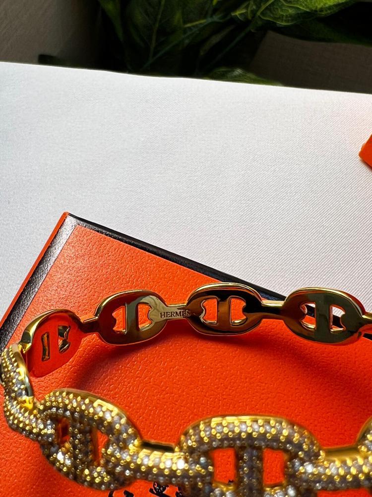 سوار Hermès الذهبي المرصّع بالكريستال – فخامة تروي قصة أناقة لا تزول ✨💛