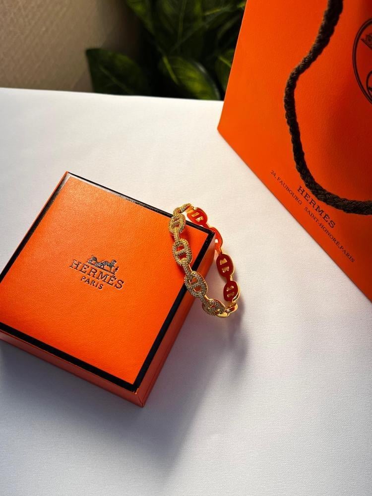 سوار فاخر من Hermès يجمع بين البريق الكلاسيكي والتصميم العصري الأنيق.
