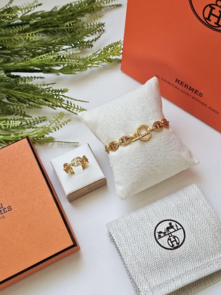اسوارة مع خاتم مستوحى من هيرمس حصري ومميز مصنوع الفضة عيار 925مزين بشعار الماركةضمان عام كامل على اللون 🔥