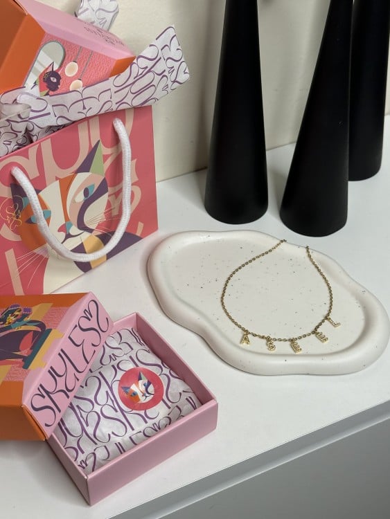 السلسال يأتي مع ملحقات المتجر جاهز للإهداء🤍