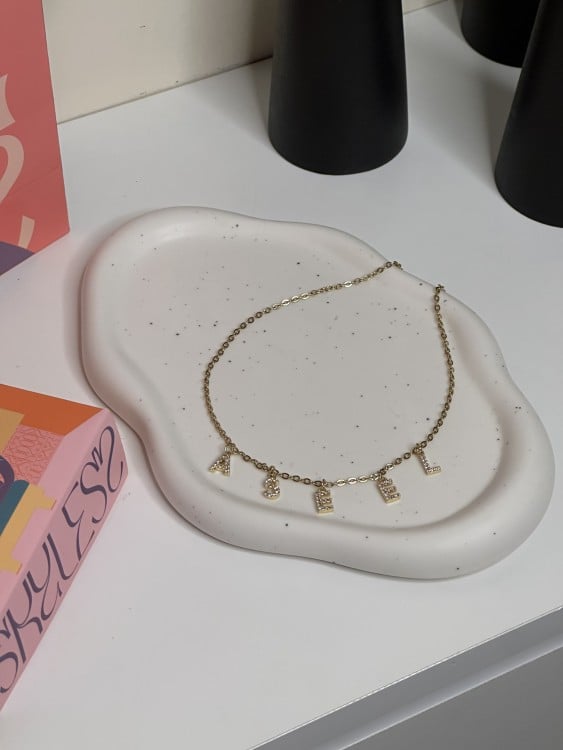 - الحروف مزينة بكريستالات صغيرة أنيقة جداً.