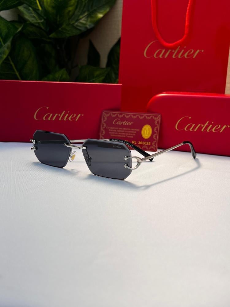 تجسّد هذه النظارة من Cartier مزيجاً مثالياً بين البساطة والفخامة، بتصميم بدون إطار وعدسات داكنة تمنح مظهراً أنيقاً وجذاباً. التفاصيل المعدنية الفضية اللامعة تضيف لمسة من الترف الهادئ الذي يميز أسلوب Cartier الكلاسيكي، لتناسب الإطلالات اليومية والرسمية على حد سواء.