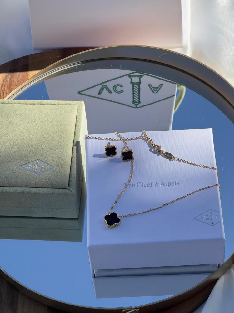 سلسال بتصميم فان كليف المميز يمتاز بحجر باللون الصدفي المميز