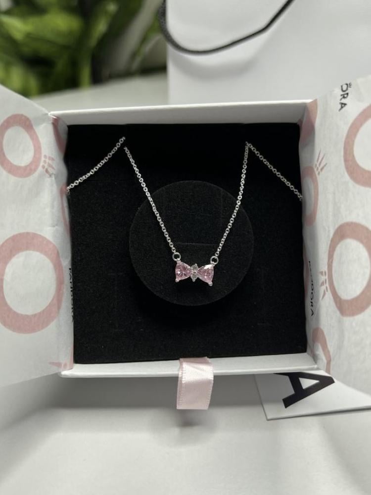 سلسال باندورا يمتاز بحجر باللون الوردي المميزمصنوعة من فضة عيار 925 وجودة عالية جداً .ضمان عام كامل على اللون